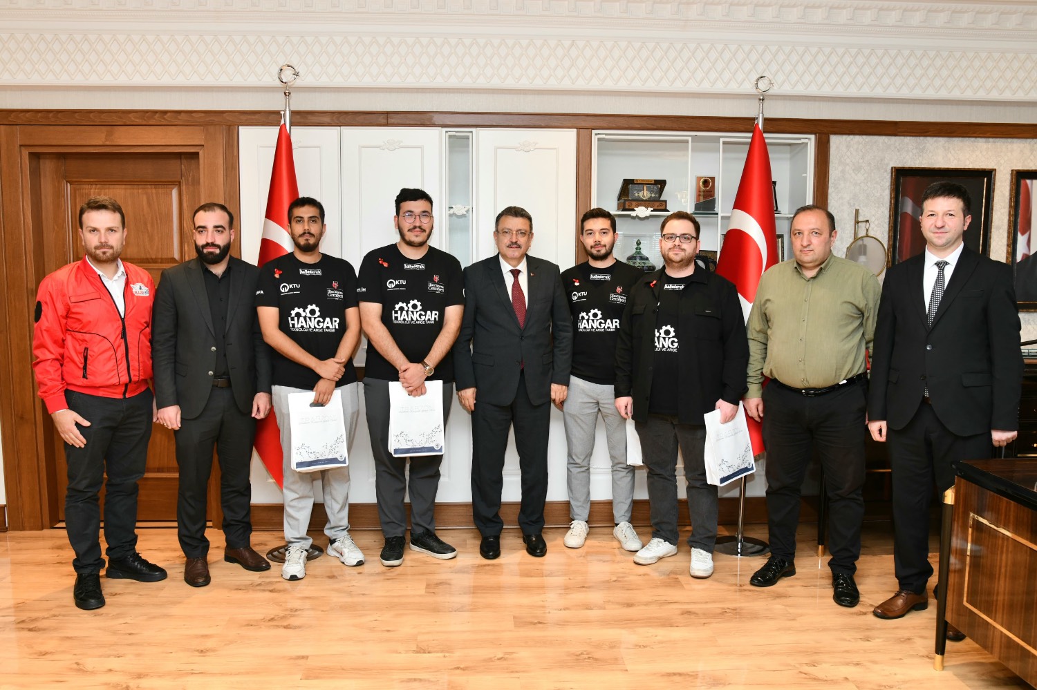 Trabzon Büyükşehir Belediye Başkanı Ahmet Metin Genç, TEKNOFEST 2024 Hava Savunma Sistemleri Yarışması’nda birincilik elde eden Hangar Takımı’nı makamında ağırladı.