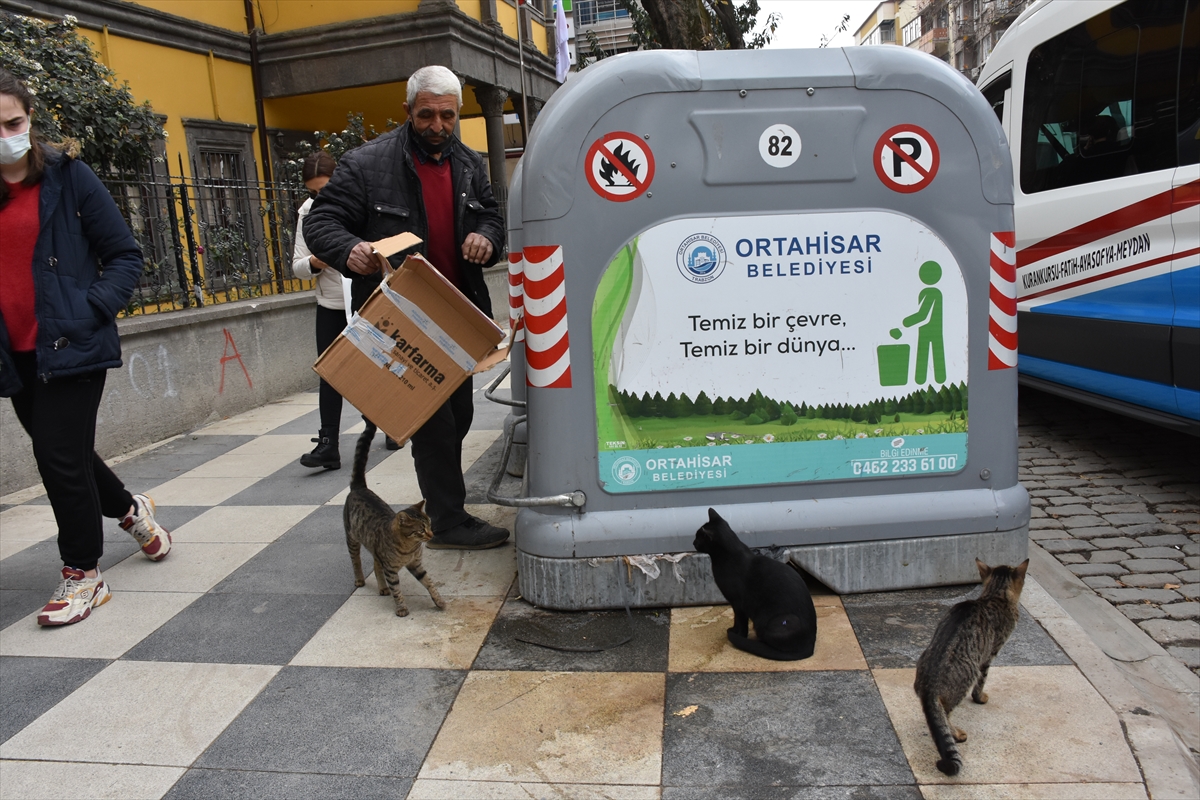 Trabzon’un sokaklarında atık malzemeleri toplayarak geçimini sağlayan 67 yaşındaki Hasan Macit, bu kazancıyla aynı zamanda pek çok sokak kedisinin de beslenmesine katkıda bulunuyor.