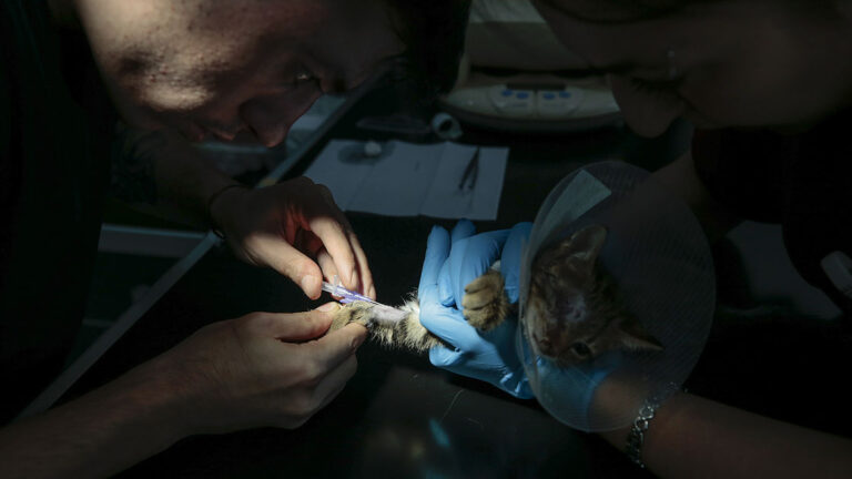 Araklı’da Yaralı Kediye Hastanede Acil Müdahale