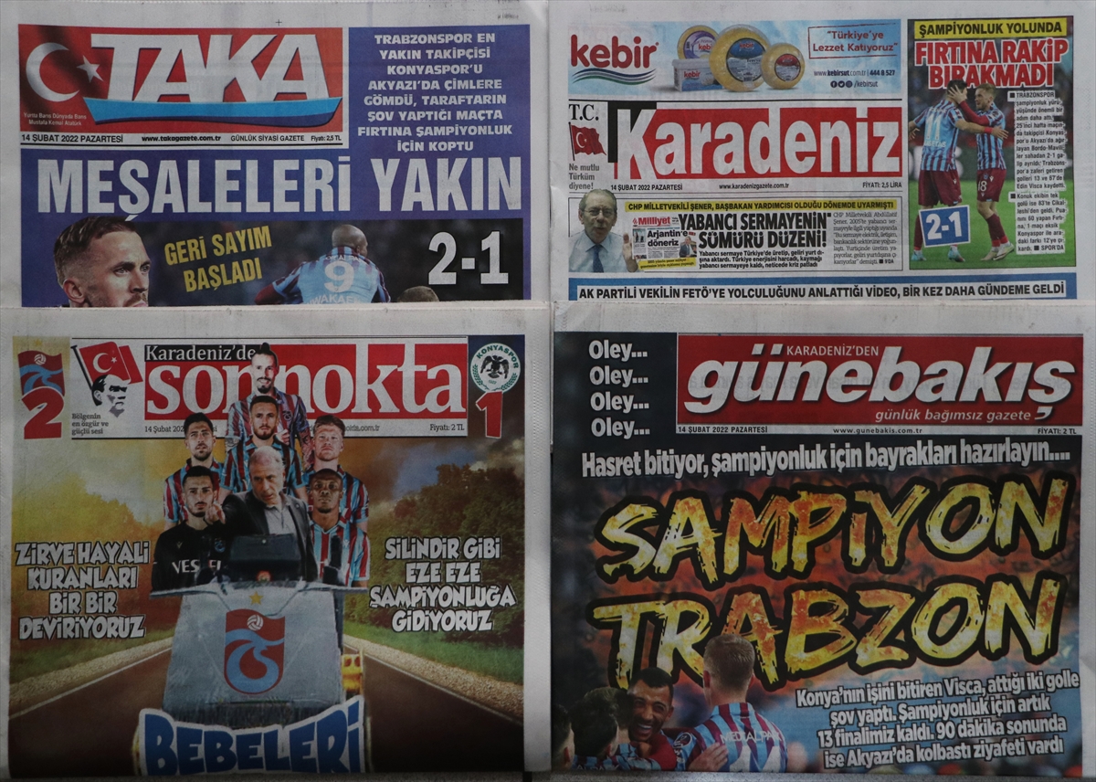 Karadeniz Son Nokta, “Gözümüzü kupa bürüdü” ifadesiyle Trabzonspor’un hedefini net bir biçimde ortaya koydu. Taka Gazetesi ise “Huzurlarınızda rakipsiz şampiyon” başlığıyla şampiyonluk hayalini canlı tuttu.