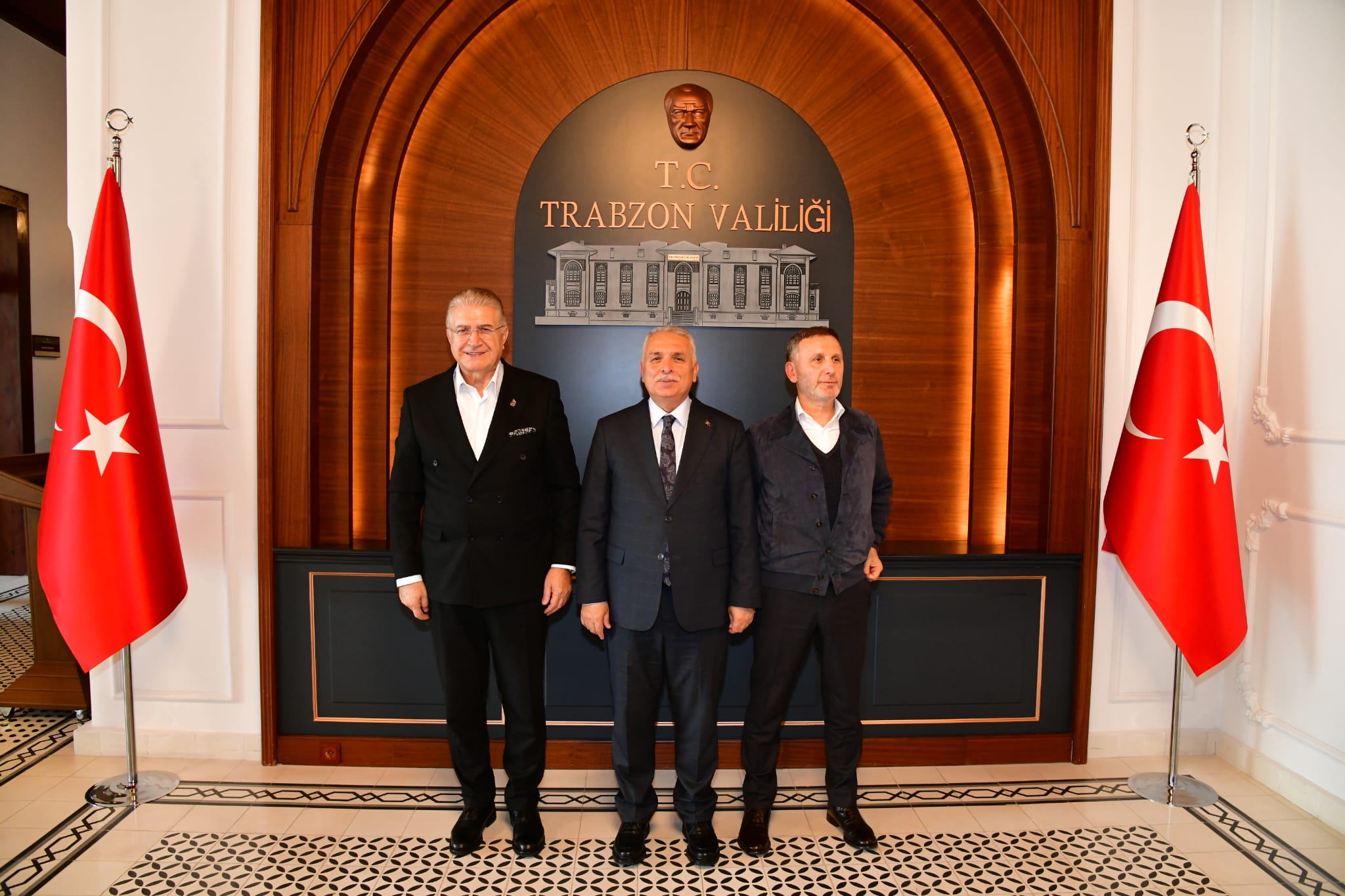 Trabzon Valisi Aziz Yıldırım, İstanbul Aydın Üniversitesi Mütevelli Heyeti Başkanı Mustafa Aydın ve Medical Park Hastanesi Sahibi Muharrem Usta ile bir araya geldi. Ziyaret, Vali Yıldırım’ın makamında gerçekleşti.