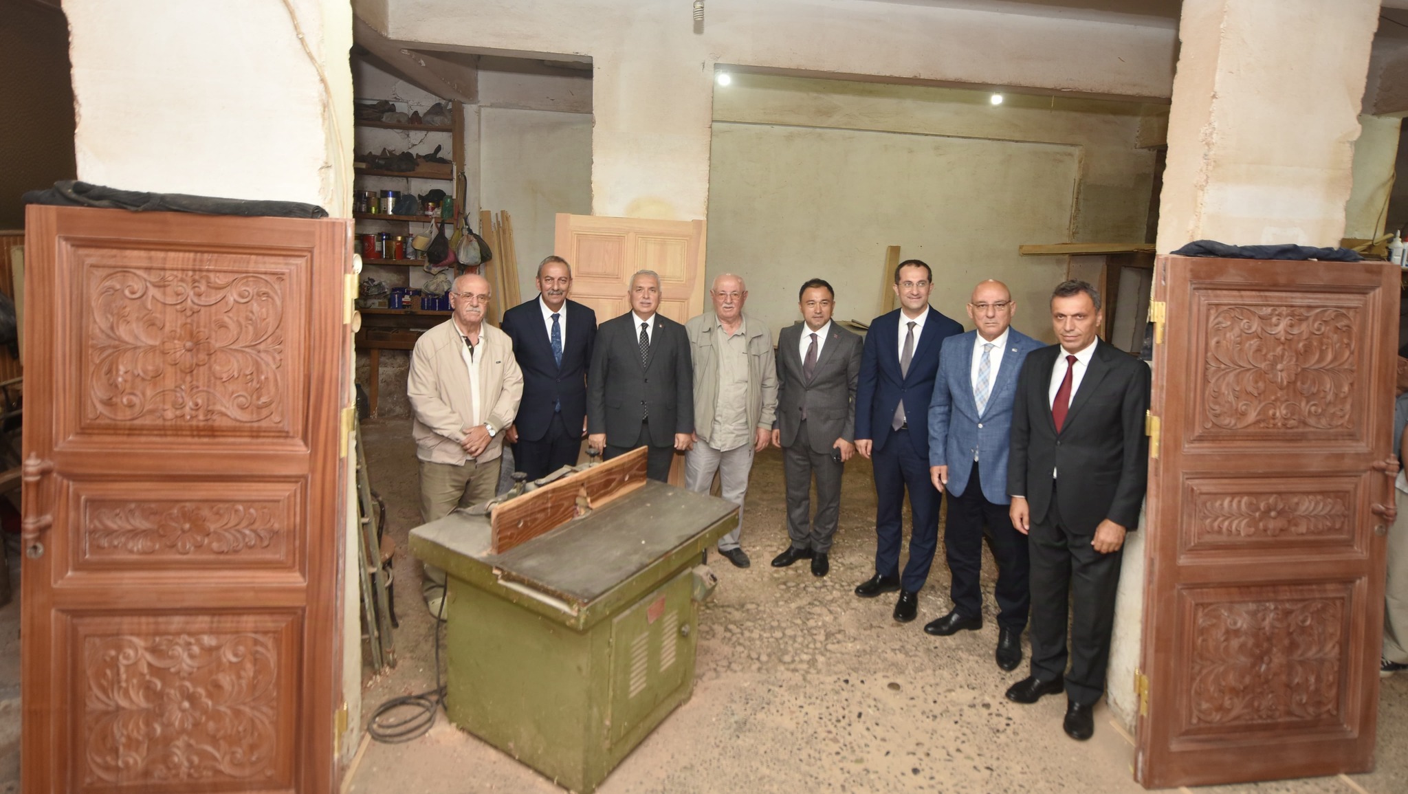 Ardından, Yaşar Ercin’in özellikle camiler için yaptığı ahşap oyma kapılar, mihraplar, minberler ve vaaz kürsüleri gibi eserleri yakından inceleme fırsatı buldular. Ercin, bu sanatı nasıl icra ettiğine dair bilgi verirken, katılımcılar da ustalığının detaylarına hayran kaldı.